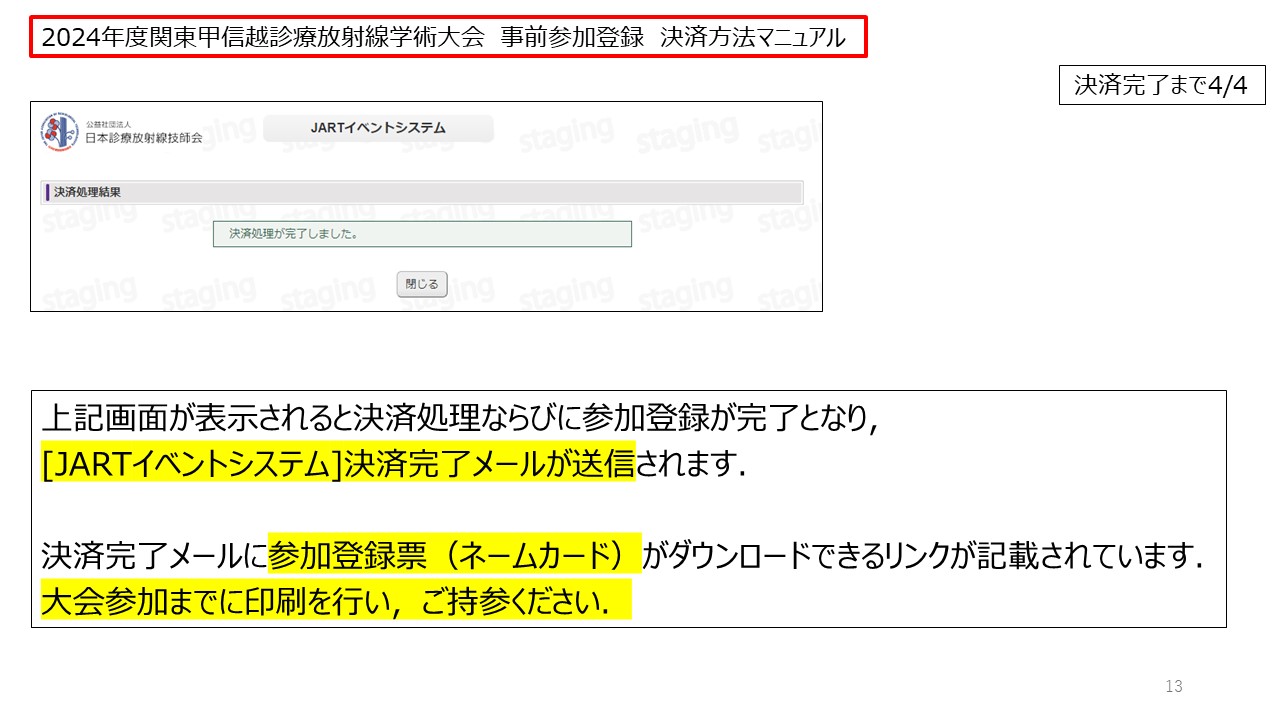 [JARTイベントシステム]決済完了メールが送信されます.